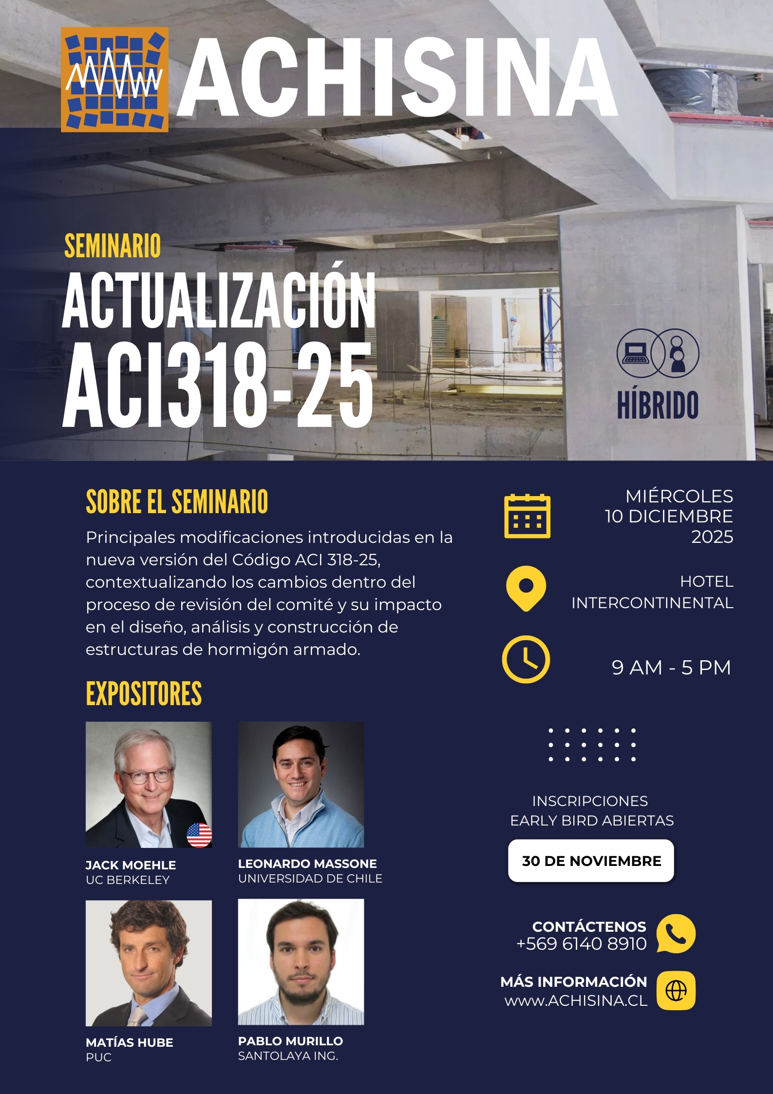 Profesor Jack Moehle, profesor de la Escuela de Posgrado en Ingeniería Civil y Ambiental en la Universidad de California en Berkeley. La investigación de Moehle se centra principalmente en ingeniería estructural, ingeniería sísmica y hormigón armado. Moehle es miembro de varias organizaciones profesionales, entre ellas la prestigiosa Academia Nacional de Ingeniería; el Comité del Código de Construcción ACI 318.Expositores Nacionales: